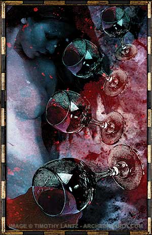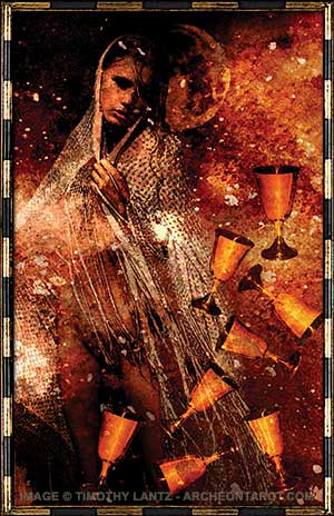 Card art/illustrations for the 14 Cups cards in the Archeon Tarot by Timothy Lantz.