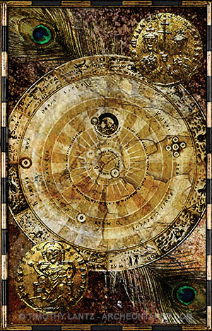 Card art/illustrations for the 22 Major Arcana cards in the Archeon Tarot by Timothy Lantz.